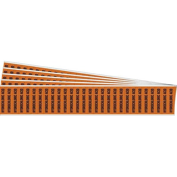 Pipe Marker, Pipe Marker Mounting Style Adhesive Pipe Marker, Pipe Marker Legend Hydrochloric Acid, Legend Text Color Black, IIAR System Abbreviation Not Applicable, IIAR Phase Not Applicable, IIAR Pressure Level Not Applicable, Background Color Orange, With or Without Arrows Without, Package Quantity 5