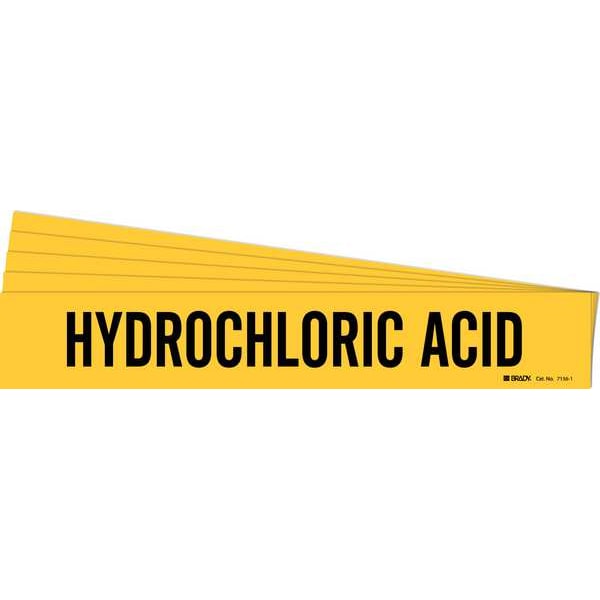 Pipe Marker, Pipe Marker Mounting Style Adhesive Pipe Marker, Pipe Marker Legend Hydrochloric Acid, Legend Text Color Black, IIAR System Abbreviation Not Applicable, IIAR Phase Not Applicable, IIAR Pressure Level Not Applicable, Character Height 2 in, Background Color Yellow, With or Without Arrows Without, Package Quantity 5