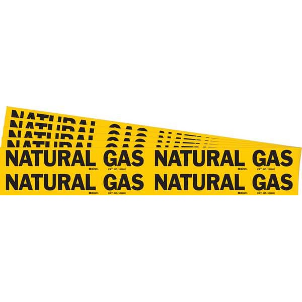 Pipe Marker, Pipe Marker Mounting Style Adhesive Pipe Marker, Pipe Marker Legend Natural Gas, Legend Text Color Black, IIAR System Abbreviation Not Applicable, IIAR Phase Not Applicable, IIAR Pressure Level Not Applicable, Character Height 3/4 in, Background Color Yellow, With or Without Arrows Without, Package Quantity 5