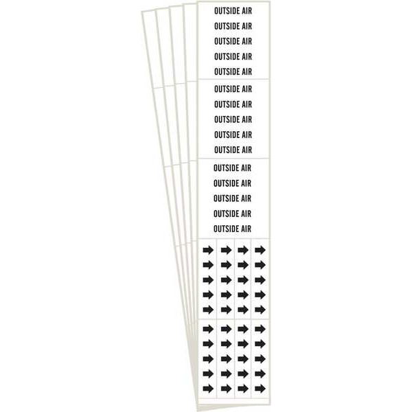 Pipe Marker, Pipe Marker Mounting Style Adhesive Pipe Marker, Pipe Marker Legend Outside Air, Legend Text Color Black, IIAR System Abbreviation Not Applicable, IIAR Phase Not Applicable, IIAR Pressure Level Not Applicable, Character Height 1/2 in, Background Color White, With or Without Arrows With, Package Quantity 5