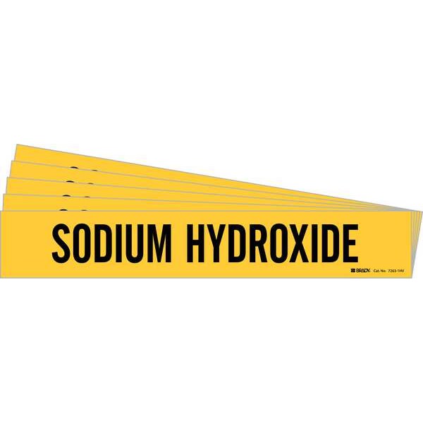 Pipe Marker, Pipe Marker Mounting Style Adhesive Pipe Marker, Pipe Marker Legend Sodium Hydroxide, Legend Text Color Black, IIAR System Abbreviation Not Applicable, IIAR Phase Not Applicable, IIAR Pressure Level Not Applicable, Character Height 3 1/2 in, Background Color Yellow, With or Without Arrows Without, Package Quantity 5