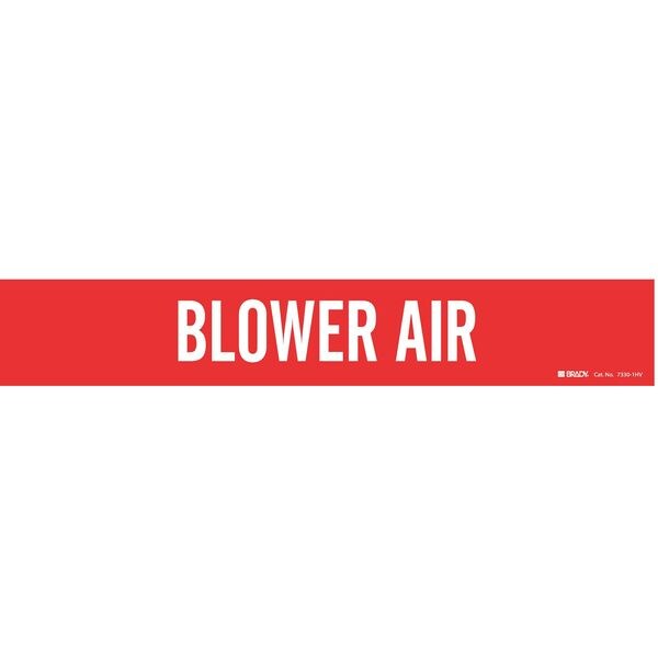 Pipe Marker, Pipe Marker Mounting Style Adhesive Pipe Marker, Pipe Marker Legend Blower Air, Legend Text Color White, Character Height 3 1/2 in, Background Color Red, With or Without Arrows Without