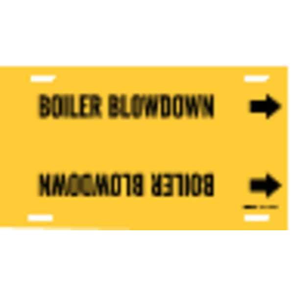Pipe Marker, Pipe Marker Mounting Style Strap-On Pipe Marker, Pipe Marker Legend Boiler Blow Down, Legend Text Color Black, Character Height 1 1/4 in, Background Color Yellow, With or Without Arrows With