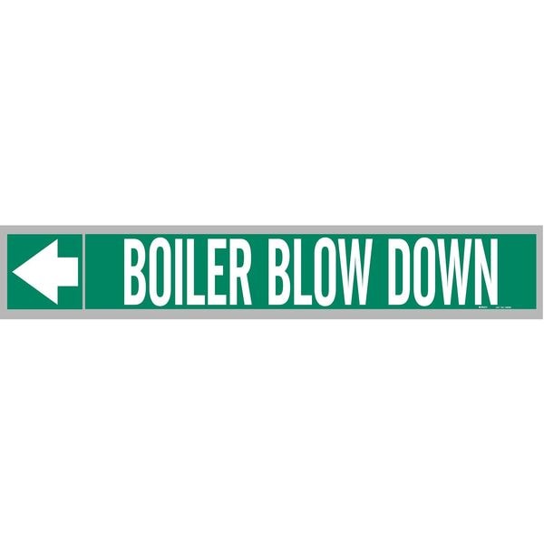 Pipe Marker, Pipe Marker Mounting Style Adhesive Pipe Marker, Pipe Marker Legend Boiler Blow Down, Legend Text Color White, Background Color Green, With or Without Arrows With
