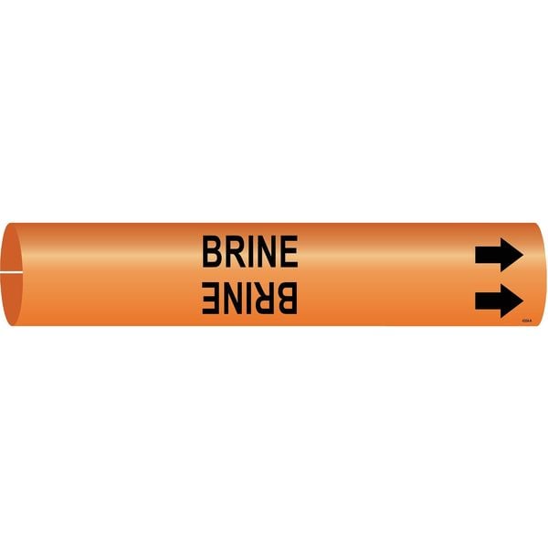 Pipe Marker, Pipe Marker Mounting Style Snap-On Pipe Marker, Pipe Marker Legend Brine, Legend Text Color Black, Character Height 1 1/4 in, Background Color Orange, With or Without Arrows With