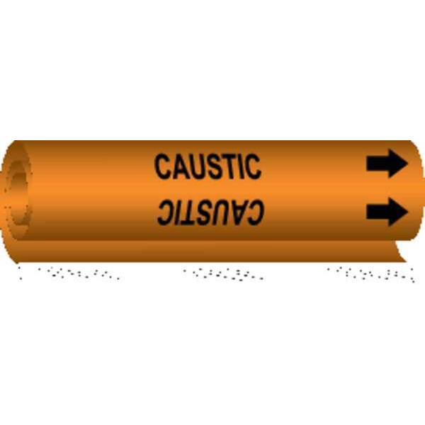 Pipe Marker, Pipe Marker Mounting Style Wrap-Around Pipe Marker, Pipe Marker Legend Caustic, Legend Text Color Black, Character Height 1 1/4 in, Background Color Orange, With or Without Arrows With