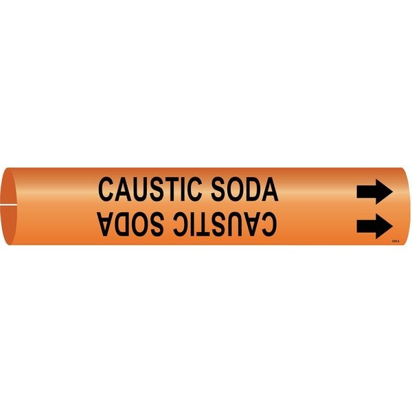 Pipe Marker, Pipe Marker Mounting Style Snap-On Pipe Marker, Pipe Marker Legend Caustic Soda, Legend Text Color Black, Character Height 1/2 in, Background Color Orange, With or Without Arrows With