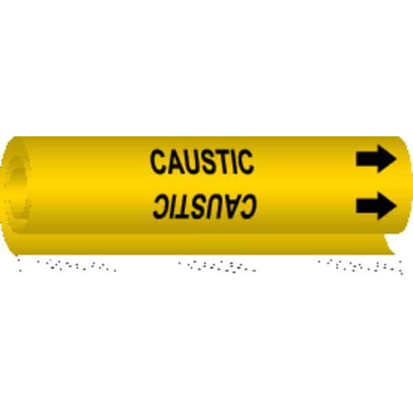 Pipe Marker, Pipe Marker Mounting Style Wrap-Around Pipe Marker, Pipe Marker Legend Caustic, Legend Text Color Black, Character Height 3/4 in, Background Color Yellow, With or Without Arrows With