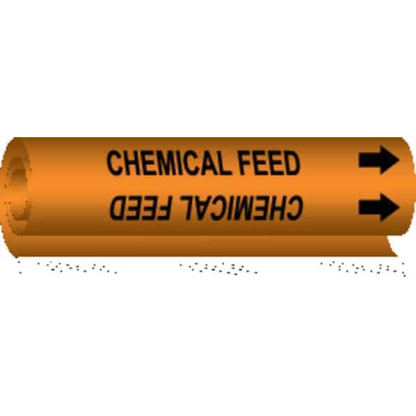 Pipe Marker, Pipe Marker Mounting Style Wrap-Around Pipe Marker, Pipe Marker Legend Chemical Feed, Legend Text Color Black, Character Height 1/2 in, Background Color Orange, With or Without Arrows With