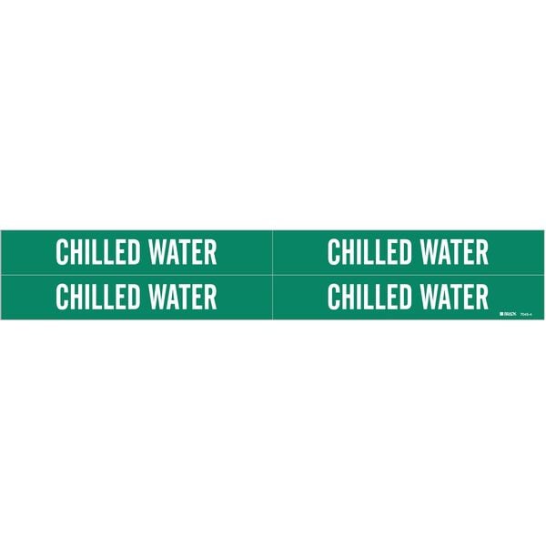 Pipe Marker, Pipe Marker Mounting Style Adhesive Pipe Marker, Pipe Marker Legend Chilled Water, Legend Text Color White, Character Height 3/4 in, Background Color Green, With or Without Arrows Without