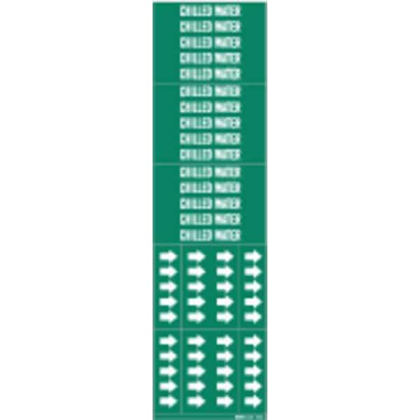 Pipe Marker, Pipe Marker Mounting Style Adhesive Pipe Marker, Pipe Marker Legend Chilled Water, Legend Text Color White, Character Height 1/2 in, Background Color Green, With or Without Arrows Without