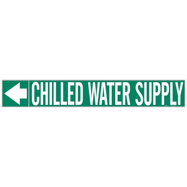 Pipe Marker, Pipe Marker Mounting Style Adhesive Pipe Marker, Pipe Marker Legend Chilled Water Supply, Legend Text Color White, Background Color Green, With or Without Arrows With
