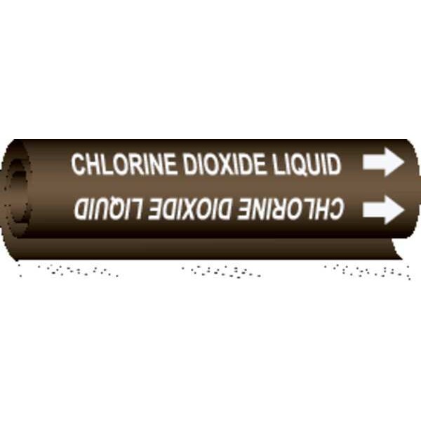 Pipe Marker, Pipe Marker Mounting Style Wrap-Around Pipe Marker, Pipe Marker Legend Chlorine Dioxide Liquid, Legend Text Color White, Character Height 1/2 in, Background Color Brown, With or Without Arrows With