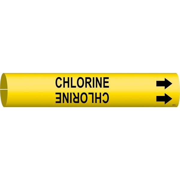Pipe Marker, Pipe Marker Mounting Style Snap-On Pipe Marker, Pipe Marker Legend Chlorine, Legend Text Color Black, Character Height 3/4 in, Background Color Yellow, With or Without Arrows With
