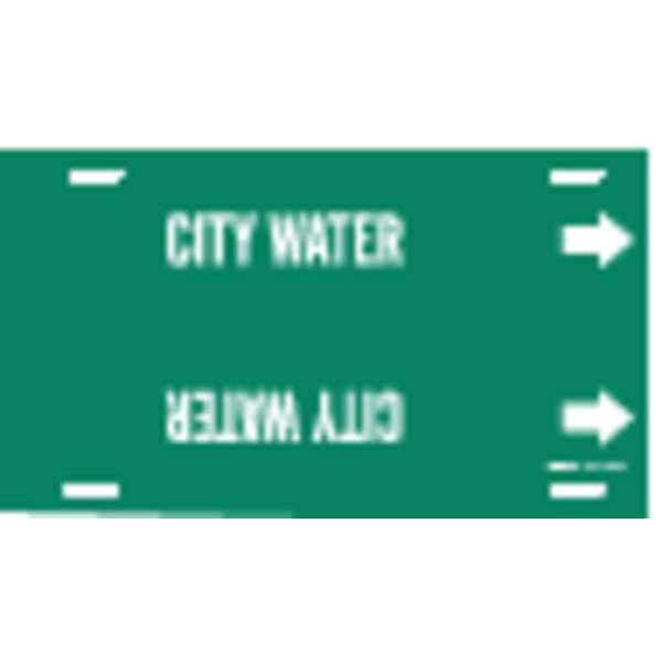 Pipe Marker, Pipe Marker Mounting Style Strap-On Pipe Marker, Pipe Marker Legend City Water, Legend Text Color White, Character Height 2 1/2 in, Background Color Green, With or Without Arrows With