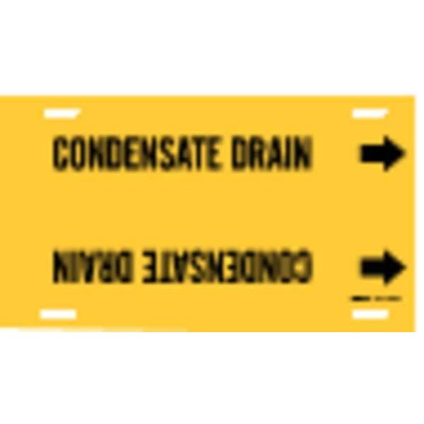 Pipe Marker, Pipe Marker Mounting Style Strap-On Pipe Marker, Pipe Marker Legend Condensate Drain, Legend Text Color Black, Character Height 2 1/2 in, Background Color Yellow, With or Without Arrows With