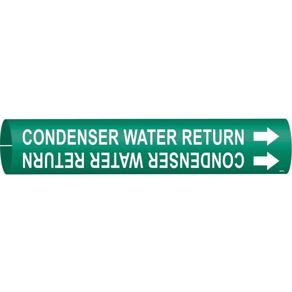 Pipe Marker, Pipe Marker Mounting Style Snap-On Pipe Marker, Pipe Marker Legend Condenser Water Return, Legend Text Color White, Character Height 1 1/4 in, Background Color Green, With or Without Arrows With