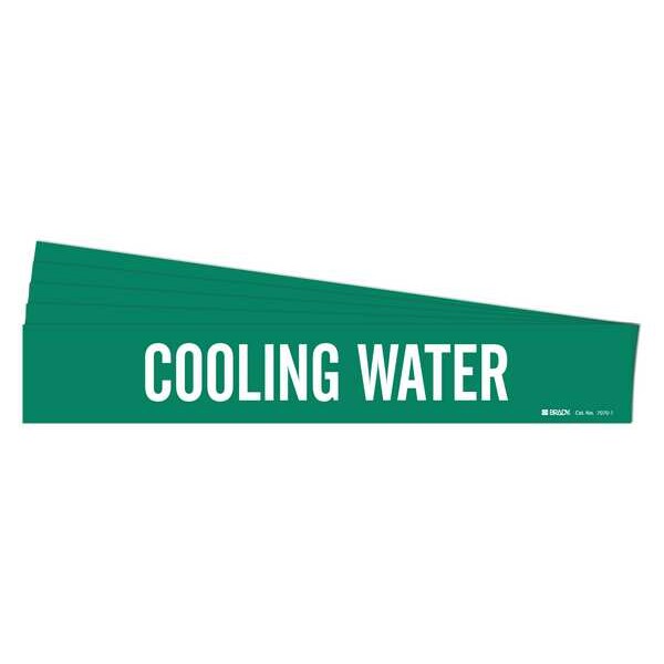 Pipe Marker, Pipe Marker Mounting Style Adhesive Pipe Marker, Pipe Marker Legend Cooling Water, Legend Text Color White, Character Height 2 in, Background Color Green, With or Without Arrows Without, Package Quantity 5