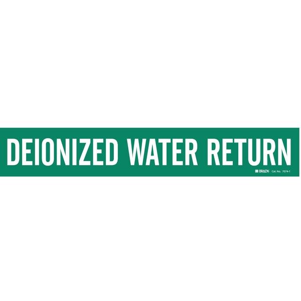 Pipe Marker, Pipe Marker Mounting Style Adhesive Pipe Marker, Pipe Marker Legend Deionized Water Return, Legend Text Color White, Character Height 2 in, Background Color Green, With or Without Arrows Without