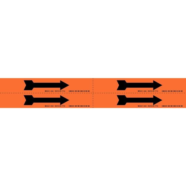 Pipe Marker, Pipe Marker Legend (Arrow), Legend Text Color Black, Background Color Orange, Pipe Marker Mounting Style Adhesive Pipe Marker, Self-Adhesive Pipe Marker Format Die-Cut on Cards, Length 1 1/8 in, Width 7 in, Thickness 0.004 in, Roll Length Not Applicable