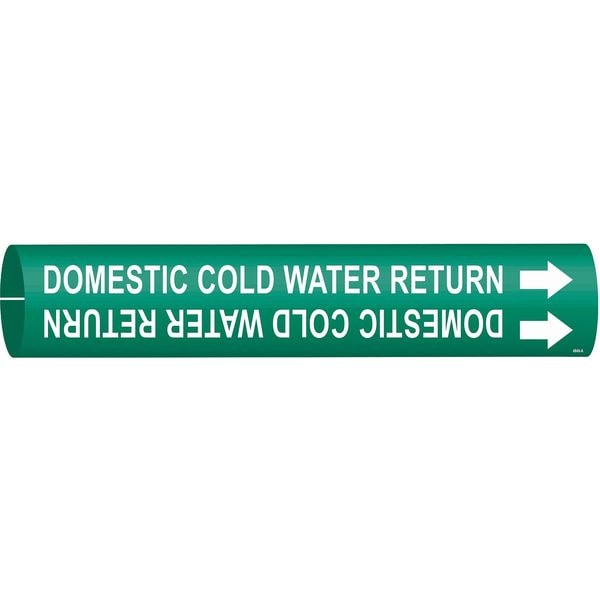 Pipe Marker, Pipe Marker Mounting Style Snap-On Pipe Marker, Pipe Marker Legend Domestic Cold Water Return, Legend Text Color White, Character Height 1/2 in, Background Color Green, With or Without Arrows With