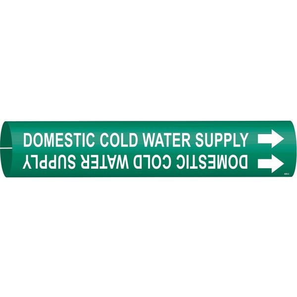 Pipe Marker, Pipe Marker Mounting Style Snap-On Pipe Marker, Pipe Marker Legend Domestic Cold Water Supply, Legend Text Color White, Character Height 1 1/4 in, Background Color Green, With or Without Arrows With