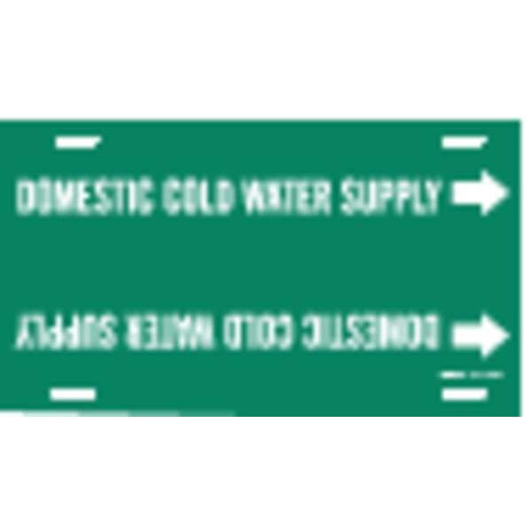 Pipe Marker, Pipe Marker Mounting Style Strap-On Pipe Marker, Pipe Marker Legend Domestic Cold Water Supply, Legend Text Color White, Character Height 1 1/4 in, Background Color Green, With or Without Arrows With
