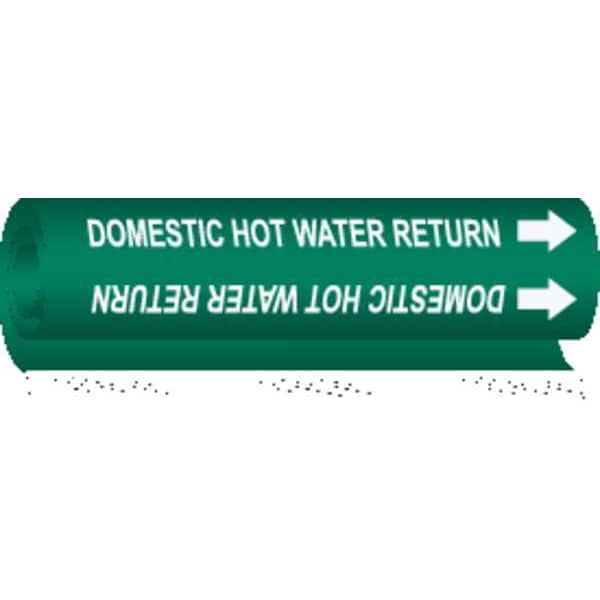 Pipe Marker, Pipe Marker Mounting Style Wrap-Around Pipe Marker, Pipe Marker Legend Domestic Hot Water Return, Legend Text Color White, Character Height 1 1/4 in, Background Color Green, With or Without Arrows With