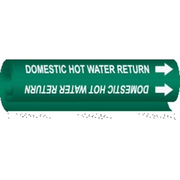 Pipe Marker, Pipe Marker Mounting Style Wrap-Around Pipe Marker, Pipe Marker Legend Domestic Hot Water Return, Legend Text Color White, Character Height 1/2 in, Background Color Green, With or Without Arrows With