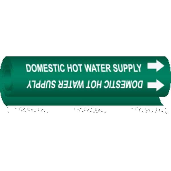 Pipe Marker, Pipe Marker Mounting Style Wrap-Around Pipe Marker, Pipe Marker Legend Domestic Hot Water Supply, Legend Text Color White, Character Height 3/4 in, Background Color Green, With or Without Arrows With