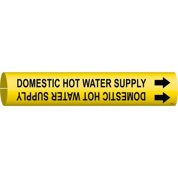 Pipe Marker, Pipe Marker Mounting Style Snap-On Pipe Marker, Pipe Marker Legend Domestic Hot Water Supply, Legend Text Color Black, Character Height 3/4 in, Background Color Yellow, With or Without Arrows With