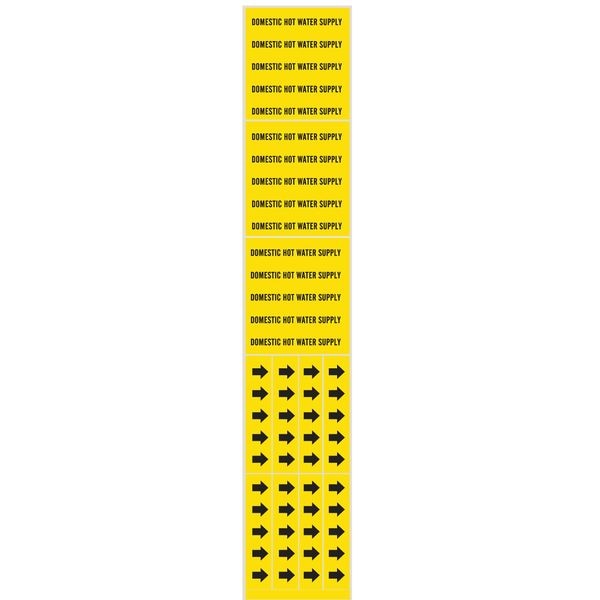 Pipe Marker, Pipe Marker Mounting Style Adhesive Pipe Marker, Pipe Marker Legend Domestic Hot Water Supply, Legend Text Color Black, Character Height 1/2 in, Background Color Yellow, With or Without Arrows Without