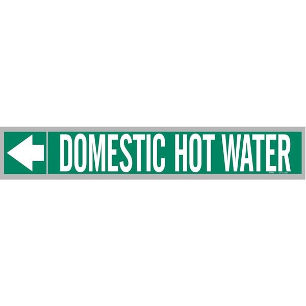 Pipe Marker, Pipe Marker Mounting Style Adhesive Pipe Marker, Pipe Marker Legend Domestic Hot Water, Legend Text Color White, Background Color Green, With or Without Arrows With