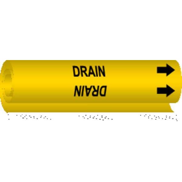 Pipe Marker, Pipe Marker Mounting Style Wrap-Around Pipe Marker, Pipe Marker Legend Drain, Legend Text Color Black, Character Height 1/2 in, Background Color Yellow, With or Without Arrows With