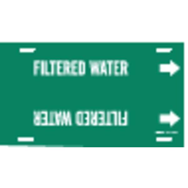 Pipe Marker, Pipe Marker Mounting Style Strap-On Pipe Marker, Pipe Marker Legend Filtered Water, Legend Text Color White, Character Height 1 1/4 in, Background Color Green, With or Without Arrows With