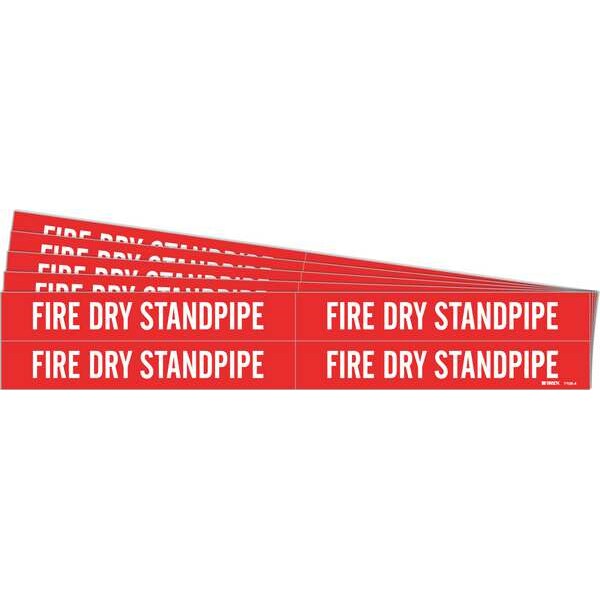 Pipe Marker, Pipe Marker Mounting Style Adhesive Pipe Marker, Pipe Marker Legend Fire Dry Stand Pipe, Legend Text Color White, IIAR System Abbreviation Not Applicable, IIAR Phase Not Applicable, IIAR Pressure Level Not Applicable, Character Height 3/4 in, Background Color Red, With or Without Arrows Without, Package Quantity 5