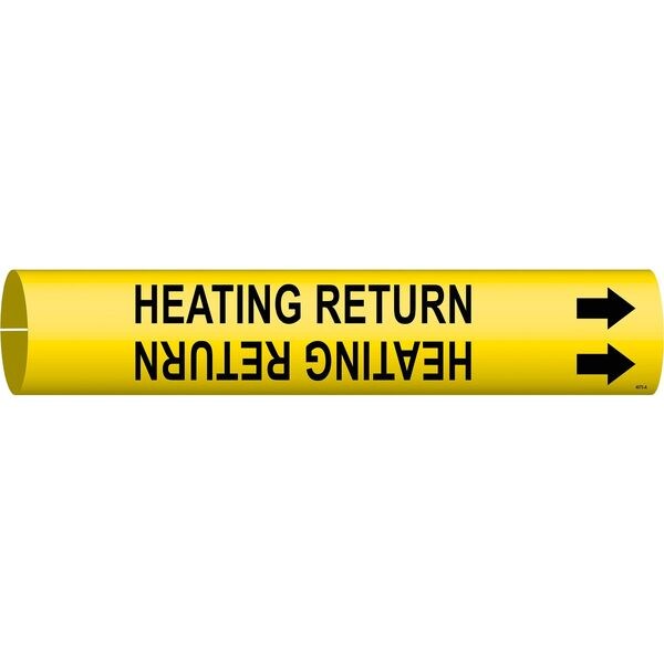 Pipe Marker, Pipe Marker Mounting Style Snap-On Pipe Marker, Pipe Marker Legend Heating Return, Legend Text Color Black, Character Height 1/2 in, Background Color Yellow, With or Without Arrows With