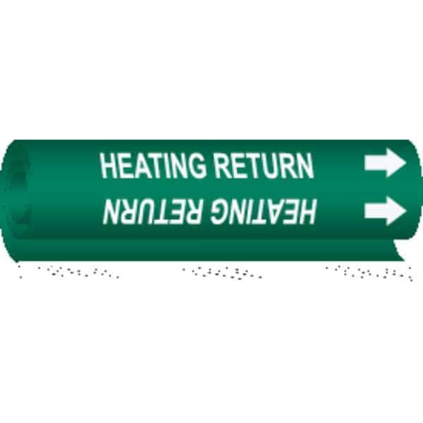 Pipe Marker, Pipe Marker Mounting Style Wrap-Around Pipe Marker, Pipe Marker Legend Heating Return, Legend Text Color White, Character Height 1 1/4 in, Background Color Green, With or Without Arrows With