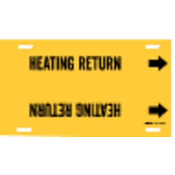 Pipe Marker, Pipe Marker Mounting Style Strap-On Pipe Marker, Pipe Marker Legend Heating Return, Legend Text Color Black, Character Height 1 1/4 in, Background Color Yellow, With or Without Arrows With