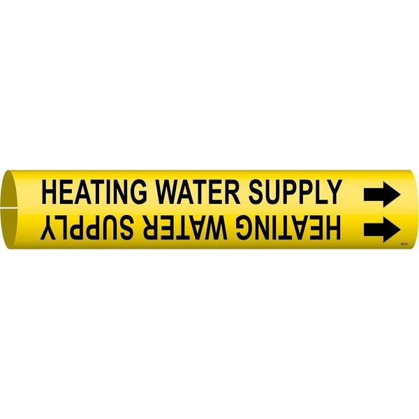 Pipe Marker, Pipe Marker Mounting Style Snap-On Pipe Marker, Pipe Marker Legend Heating Water Supply, Legend Text Color Black, Character Height 1 1/4 in, Background Color Yellow, With or Without Arrows With