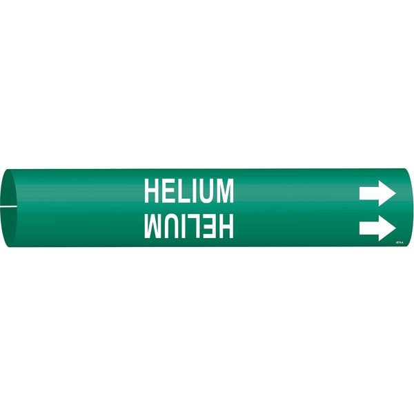 Pipe Marker, Pipe Marker Mounting Style Snap-On Pipe Marker, Pipe Marker Legend Helium, Legend Text Color White, Character Height 1/2 in, Background Color Green, With or Without Arrows With