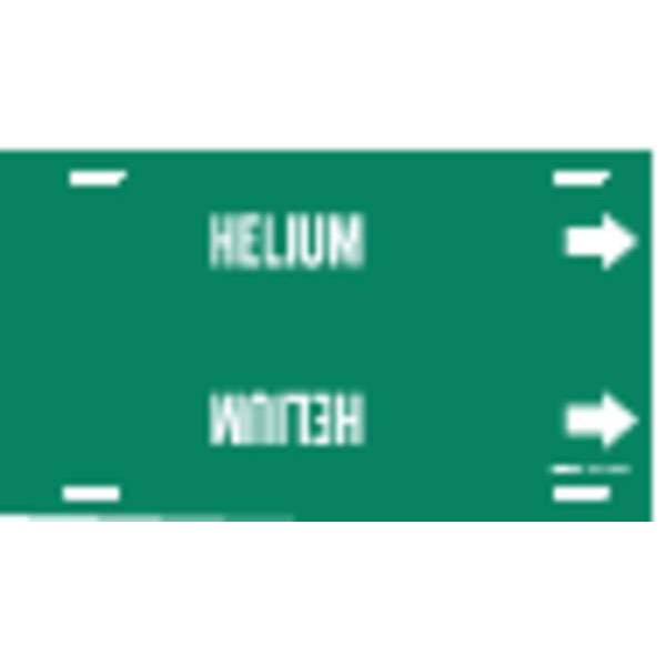 Pipe Marker, Pipe Marker Mounting Style Strap-On Pipe Marker, Pipe Marker Legend Helium, Legend Text Color White, Character Height 1 1/4 in, Background Color Green, With or Without Arrows With