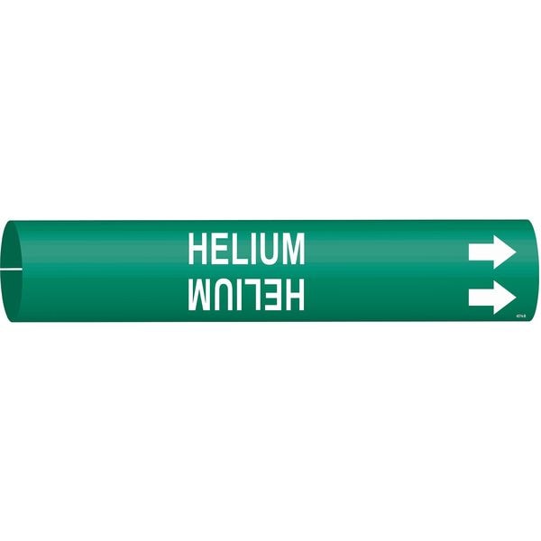 Pipe Marker, Pipe Marker Mounting Style Snap-On Pipe Marker, Pipe Marker Legend Helium, Legend Text Color White, Character Height 3/4 in, Background Color Green, With or Without Arrows With