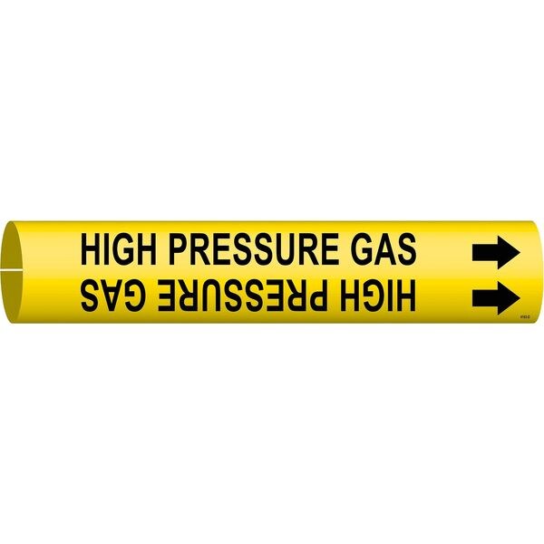 Pipe Marker, Pipe Marker Mounting Style Snap-On Pipe Marker, Pipe Marker Legend High Pressure Gas, Legend Text Color Black, Character Height 1 1/4 in, Background Color Yellow, With or Without Arrows With