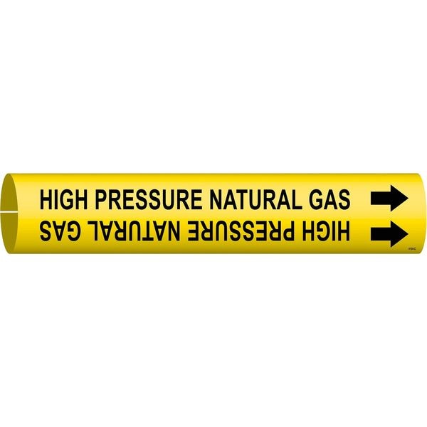 Pipe Marker, Pipe Marker Mounting Style Snap-On Pipe Marker, Pipe Marker Legend High Pressure Natural Gas, Legend Text Color Black, Character Height 1 1/4 in, Background Color Yellow, With or Without Arrows With