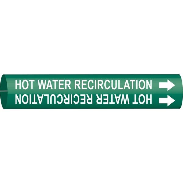 Pipe Marker, Pipe Marker Mounting Style Snap-On Pipe Marker, Pipe Marker Legend Hot Water Recirculation, Legend Text Color White, Character Height 1 1/4 in, Background Color Green, With or Without Arrows With