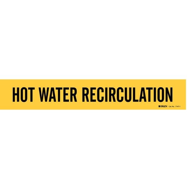 Pipe Marker, Pipe Marker Mounting Style Adhesive Pipe Marker, Pipe Marker Legend Hot Water Recirculation, Legend Text Color Black, Character Height 2 in, Background Color Yellow, With or Without Arrows Without