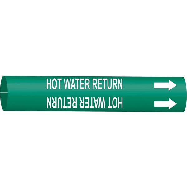 Pipe Marker, Pipe Marker Mounting Style Strap-On Pipe Marker, Pipe Marker Legend Hot Water Return, Legend Text Color White, Character Height 2 1/2 in, Background Color Green, With or Without Arrows With