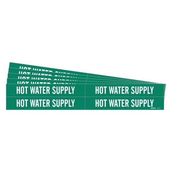 Pipe Marker, Pipe Marker Mounting Style Adhesive Pipe Marker, Pipe Marker Legend Hot Water Supply, Legend Text Color White, Character Height 3/4 in, Background Color Green, With or Without Arrows Without, Package Quantity 5