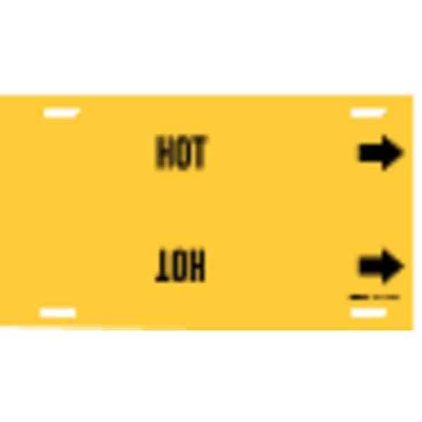 Pipe Marker, Pipe Marker Mounting Style Strap-On Pipe Marker, Pipe Marker Legend Hot, Legend Text Color Black, Character Height 3 1/2 in, Background Color Yellow, With or Without Arrows With